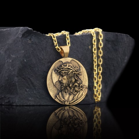 Crucifix Silver Necklace, Gold Plated Silver Christian Cross Pendants, Silver Oval Crucifix Necklace