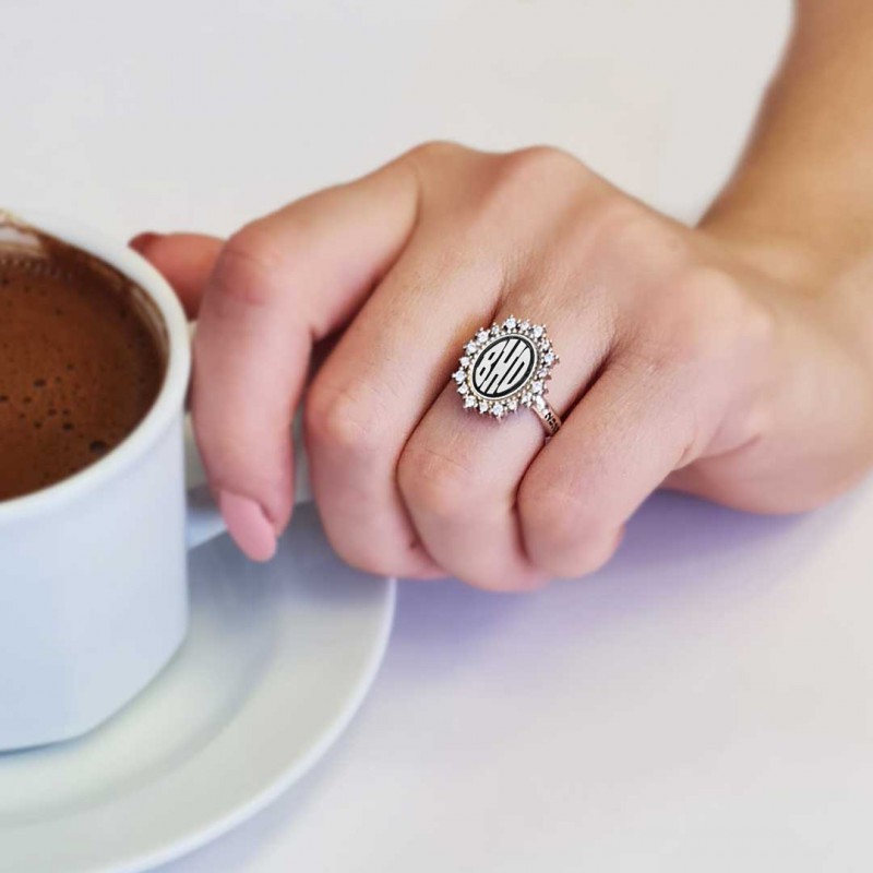 Handmade Special 925 Sterling Silver Monogram Letter Women Ring Handmade Special 925 Sterling Silver Monogram Letter Women Ring 4458-07 Handmade Special 925 Sterling Silver Monogram Letter Women Ring