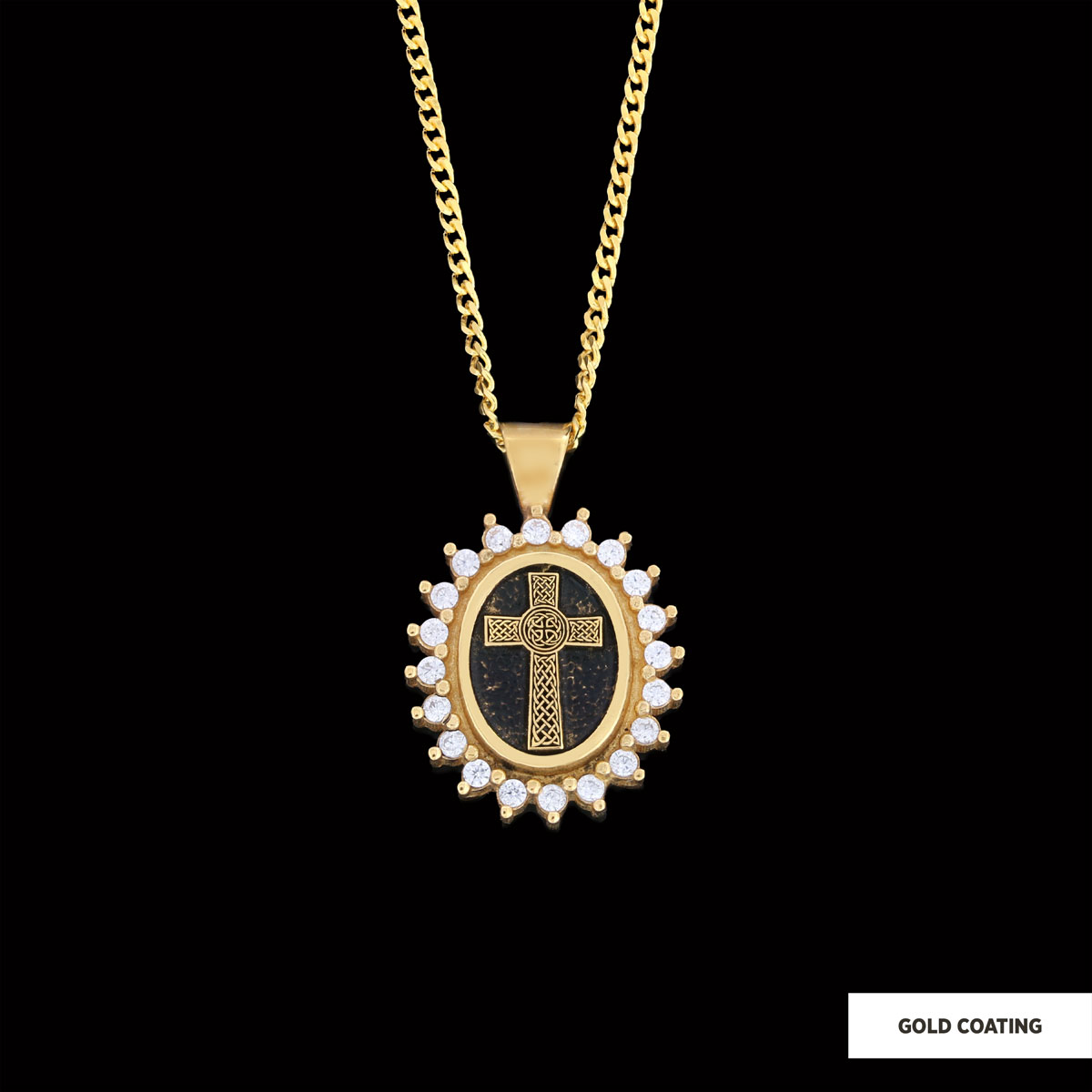 Silver Oval Cross Necklace, Stone Cross Silver Necklace, Gold Plated Silver Christian Cross Stone Necklace, Women's Religious Necklace